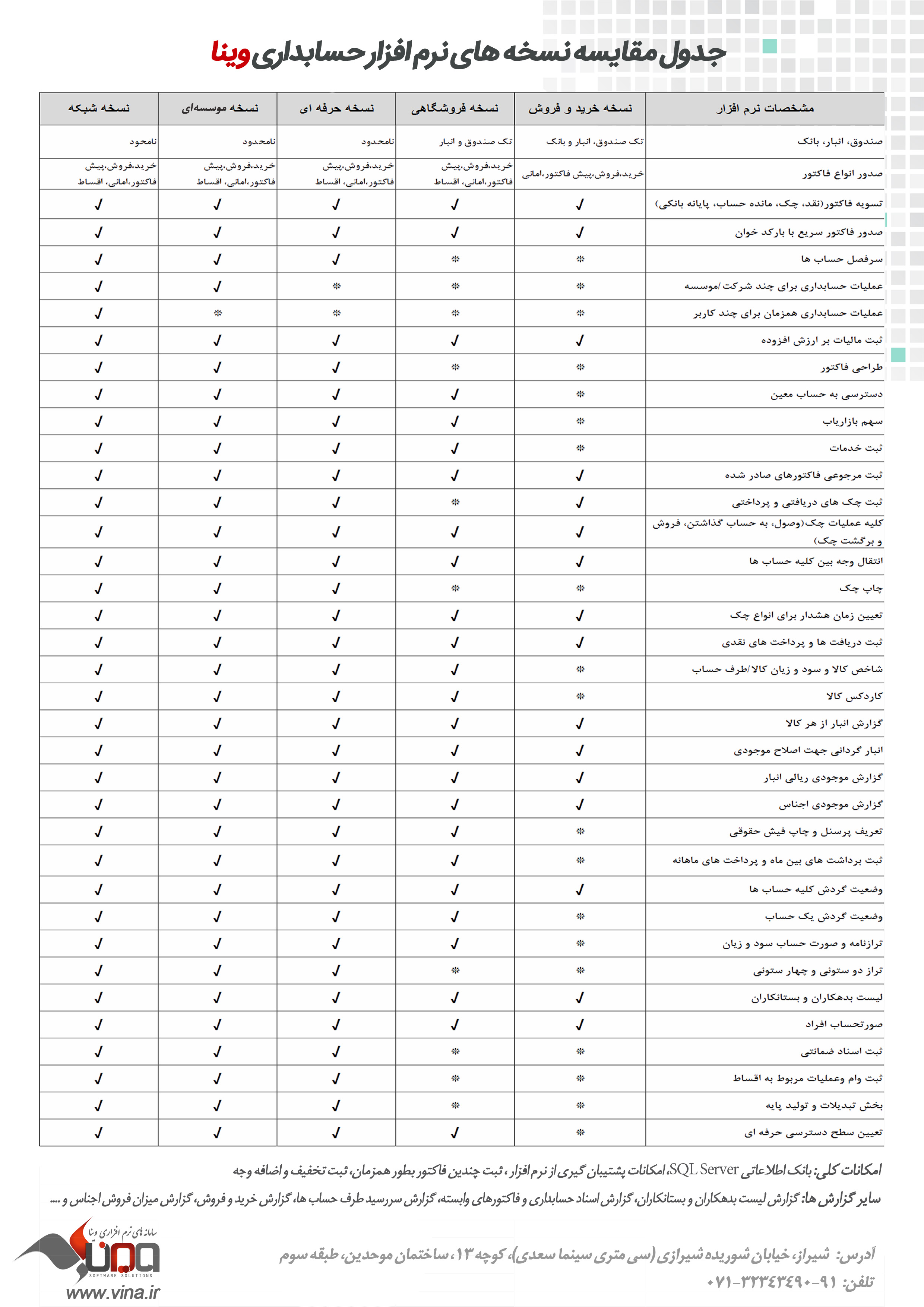 تولید کننده نرم افزارهای حسابداری و مدیریتی. نرم افزار حسابداری وینا، اتوماسیون حضوروغیاب وینا، نرم افزار مدیریت تردد افراد وینا، نرم افزار رستوران وینا