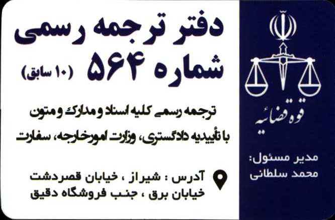 مشخصات دفتر ترجمه رسمی شماره 564 شیراز