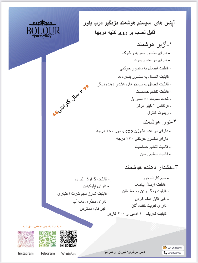 شرکت بلور تنها تولید کننده نسل جدید دزدگیر هوشمند درب ، در ایران می باشد.