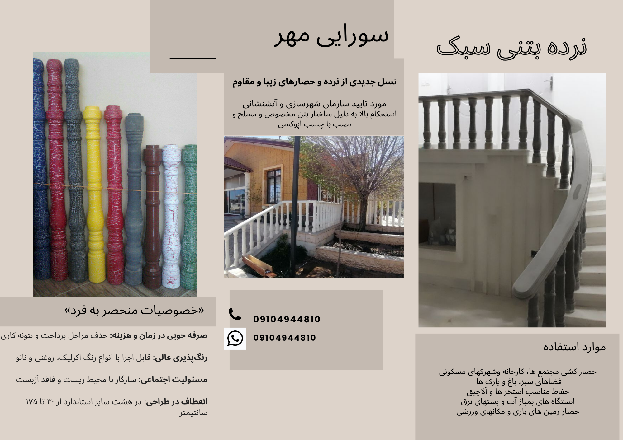 تولید کننده نرده های سبک بتنی جهت حصار کشی مجتمع ها، کارخانه وشهرکهای مسکونی و صنعتی، فضاهای سبز، بو پارک ها، ایستگاه های پمپاژ آب و پستهای برق