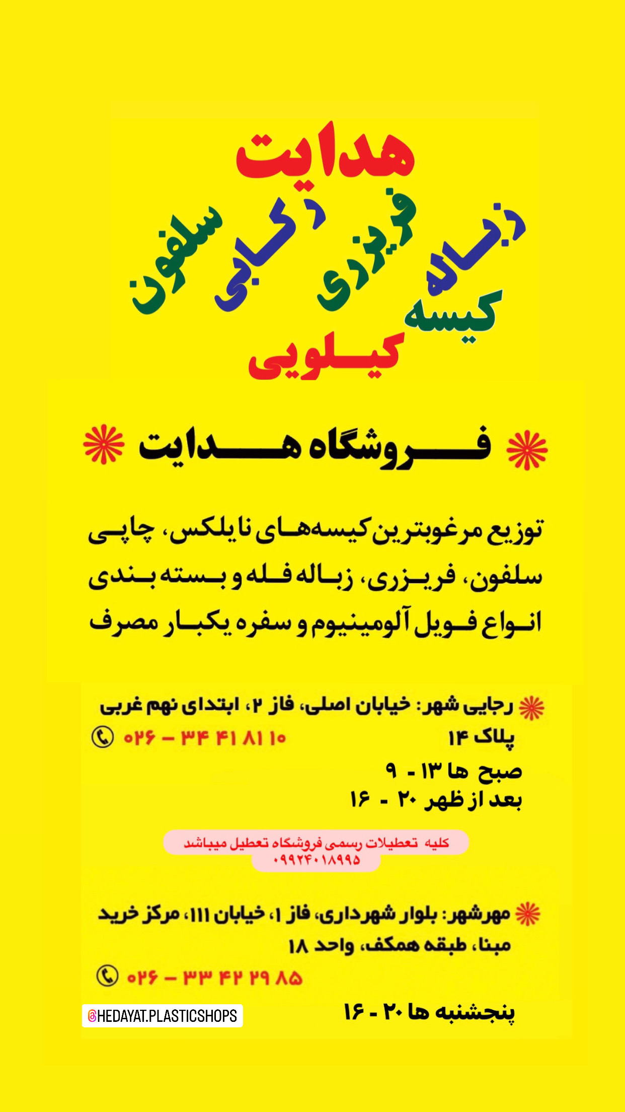| وبسایت | https://instagram.com/hedayat.plasticshops?igshid=MmIzYWVlNDQ5Yg |