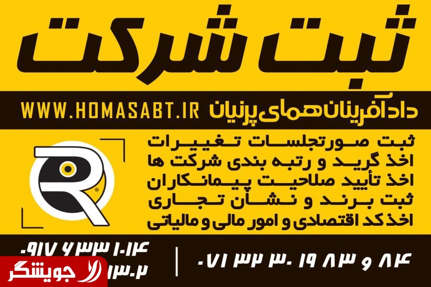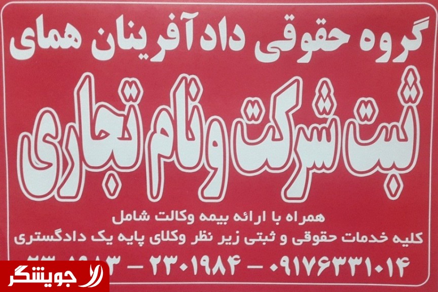 Provide initial consultation and if needed, specialized, to register a company with over ten years of experience by attorneys by a justice and experienced experts, records in all matters related to the following: ثبت any type of company and institution, ranging from Joint Stock Company , Limited , Co-op تنظیم and record minutes پلمب annuity offices, financial companies ثبت of trademark, brand and logo اخذ codes اخذ the code inclusive, the direction of foreign nationals اخذ grid contracting اخذ confirmation jurisdiction, the Department