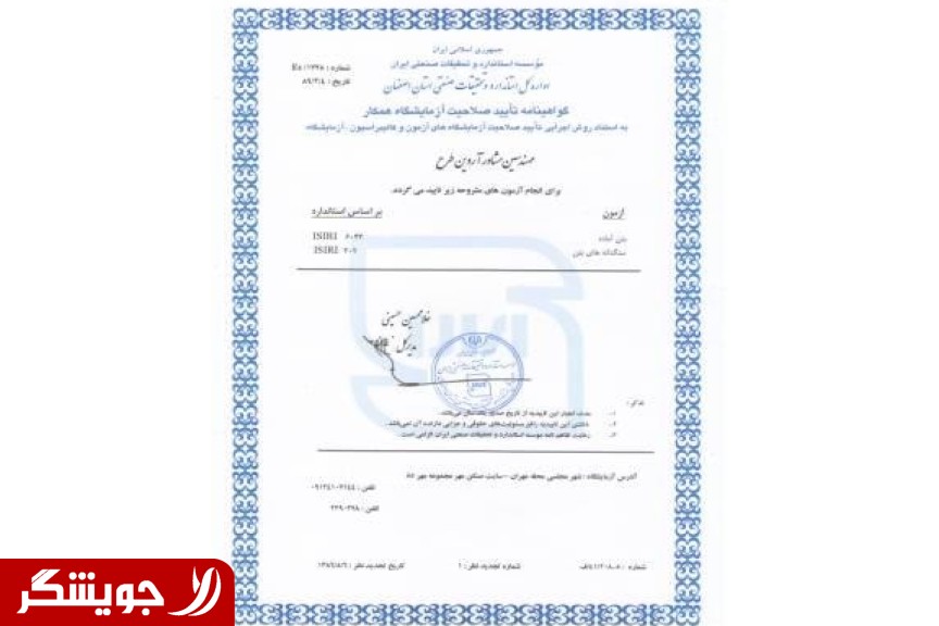 *Has certificate of approval, qualification, lab Fellow of the Institute of standard and industrial research of Iran in the field of: