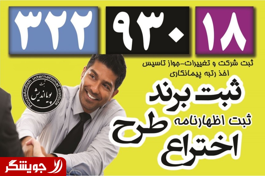 Registration of Joint-Stock Company, special occasions, cooperatives, etc., liability limited by setting the minutes of the relevant changes relating to the board, the CEO, etc., transfer of shares, increase and reduction of capital, companies, cooperatives, etc., PJs., the limited liability by setting the minutes of the relevant (by experienced experts and retired Registration Office) آدرس: Mazandaran/ Babol/ field endowment (jihad)/ Motahari Ave/ Tower enamel/ floor 6/ unit 63/ company Dynamic-sighted تماس: 32293018_(At the bottom of the ad)8885526 http://www.pouya-andish.ir