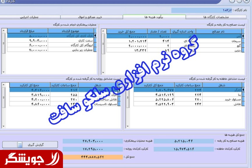 Software Building (Level 1) to do things related to company construction and contracting, design and implementation. The design of this software from the year 1386 is started by construction companies for practical and functional has been tested and is used and all defects, it also has been fixed and the software is fully functional and efficient for the company this can be. This application if designed is by beginner users as well can be used. Different parts of this software are as follows: • company profile • stock company • profile shareholders • specifications workshops • estimated cost of construction of the • Information officials, shopping, • operations executive • property workshop • staff profile • presence and absence of employees • issuance of pay stubs employees • set the list and the diskette of insurance • registered staff transitional between workshops • contract, participants in the construction of • contract employers • contracts, contractors, • contract customers • company's turnover • registration, bank accounts and transactions, they • registration information category check company • registration checks of incoming and outgoing • warning check • lease property • letter sent • documents for company • appointments • fax and email • users • profit and loss • graph • backup and restore • events program • search