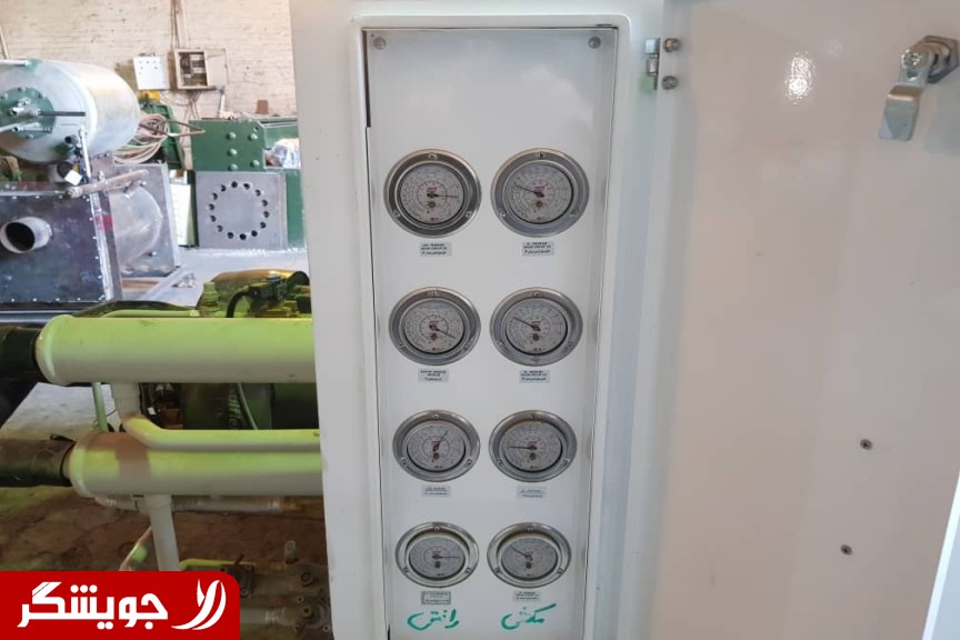 200 ton chiller, four screw compressors, equipped with two air condensers, all European parts In compression gas chillers, first compressed by the compressor. This gas is then cooled to a condenser introduced by ambient water or air and converted to a liquid. This liquid enters the cooler (evaporator) at a lower pressure by passing through an expansion valve or capillary tube, which causes this pressure drop. The liquid evaporates and as a result, the coolant, by taking the latent heat of its evaporation from the cooling medium, causes cooling in the materials that are in contact with the cooling part. Then the gas from evaporation is transferred to the compressor and this cycle is repeated.
