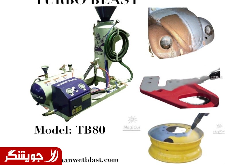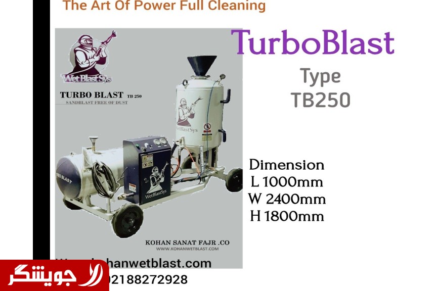 Ashin Turbo Blast New (Mobile Wet Blast) This mobile device is capable of performing rust removal, paint removal, degreasing, and grease removal on various surfaces at a speed of 12 to 18 square meters per hour. This device is equipped with a remote control for the operator that allows controlling the abrasive output from the nozzle head, as well as turning the abrasive spraying system on and off. This system connects to the operator's waistband. Using the wet abrasive blasting technique (dust-free sandblasting), this machine performs sandblasting with higher quality than traditional dry sandblasting methods and at an equivalent speed. This device is patented by Kohan Sanat Fajr Engineering Company and cleans various surfaces according to SSPC standards. Interested customers can arrange with the company to observe the device's performance up close. For more information, catalogs, specification requests, pro forma invoices, etc., regarding the sale of mobile wet blast, mobile wet blast price, and mobile wet blast purchase, please contact the phone and mobile numbers below.