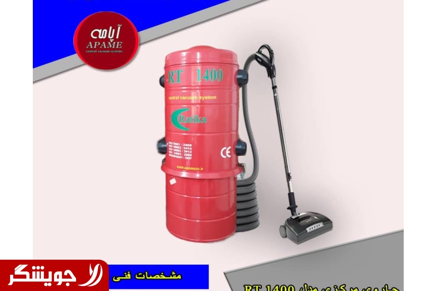Central vacuum cleaner company Apameh Model 1 Motor power 1400 watts Tank capacity 20 liters Suitable for apartment, car wash, workshop, hairdresser has models two motor with 2800 Watt power Three motor with 4200 watt power Four motor with 5600 watt power (comfortable with Apame)