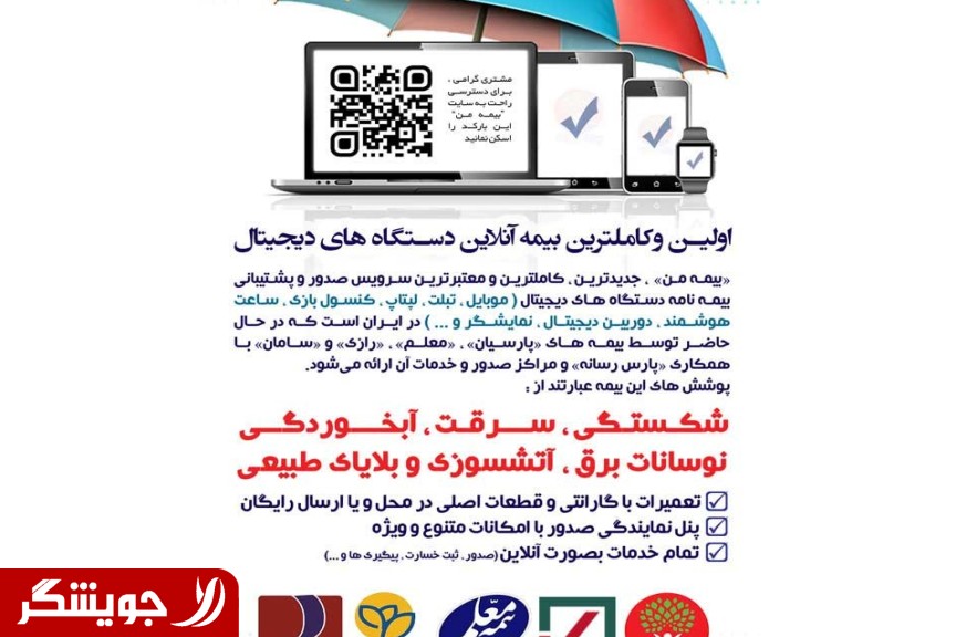 My digital insurance is the first, most reputable and largest issuing center (online and offline) and online support for digital devices insurance (mobile, tablet, laptop, game console, watch Smart, digital camera, etc.) is in the Middle East, which is currently offered by Parsian, Moallem, Razi, Saman and Dana insurance companies in cooperation with Pars Media Company. من The coverage of my digital insurance policy is as follows: R
