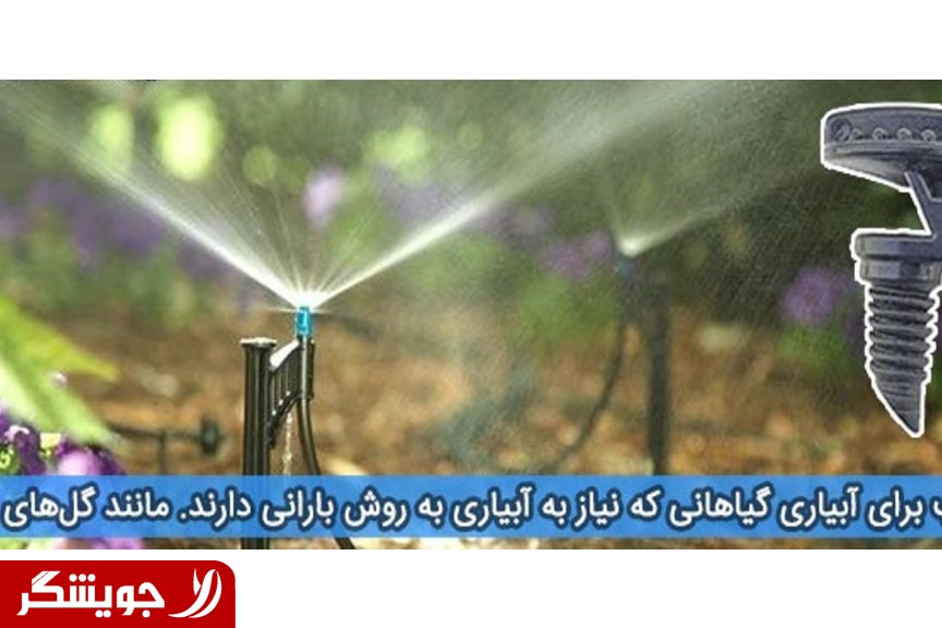 180 ° microjet sprays water in the form of fine particles and in the form of rain with a 180 degree spray radius in a semicircle. It needs a pressure of 1.5 to 2.5 bar to disperse the water about 70 to 100 cm in small drops (slightly larger than the mist). Therefore, it is very suitable for irrigating short plants such as grass and flower bushes, etc., and for gardens with a width of about 1 to 1.5 meters. It can be easily installed on a 6 mm pipe or pasta pipe. It can also be installed directly on a 16 mm tube (for plants that only need root irrigation and spraying on the leaves is harmful to the plant). To install on a 16 mm pipe, you must first puncture the installation site and install the microjet on it. The guardian base can be used to install the microjet on the pasta tube. Macaroni tube / puncture / tube 16 and guard base are also available. (At the bottom of the ad)"