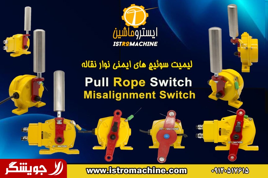 ✅فروش و تامین انواع تجهیزات و سیستم های ایمنی و حفاظتی نوار نقاله – کانوایر و خطوط انتقال مصالح انواع سوییچ های ایمنی نوار نقاله شامل: ⭕ Pull Rope Switch یا Pull Cord Switch پول راپ سوییچ , پول رپ سوییچ ، پول روپ سوییچ ، سوییچ طنابی ، سوئیچ قطع کن و توقف اضطراری نوار نقاله ⭕ Misalignment Switch (میس الایمنت سوییچ ) برای جلوگیری از جابجایی عرضی و انحراف نوار نقاله – این سوییچ ایمنی در کنار آن نصب می شود. ⭕ Speed Switch سوییچ های سنجش سرعت نوار نقاله ⭕ Material Flow Detector برای کنترل اضافه بار یا کنترل کاهش قطر تسمه نوار نقاله ⭕ Belt wear Monitor سنسور سایش و پارگی نوار نقاله ⭕ Limit Switch لیمیت سوئیچ ایمنی نوار نقاله ⭕کلید پارگی نوار(Ripped Belt Switch) برای کنترل اضافه بار یا کنترل کاهش قطر تسمه نوار نقاله