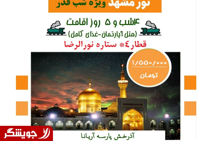 Holy Mashhad Tour Nora Reza Train 4 nights and 5 days stay Apartment hotel near the shrine Selected menu Special Ghadr Night ⭐ at the rate of 1/550/000 Tomans⭐