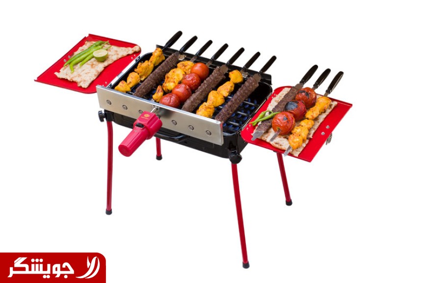 New design with beautiful New design with Dual burner of coal and gas (city gas and liquefied)) Easy, fast and even cooking, without burning By motor number battery (1/5 volts) with high power Low battery consumption Ability to cook all kinds of shredded kebabs, leaves, tongs, chicken, tomatoes and ... Has two steel skewers in two different sizes Easy to carry Usable at home, work, travel, picnic and Easy and fast assembly in less than three minutes Saving time and energy Body glazed body and electrostatic powder paint on doors and bases Flame spreader Baroque glaze Easy to wash body and other parts In patent certificate number 62553 from the Companies Registration Office 24 months warranty and 5 years after-sales service