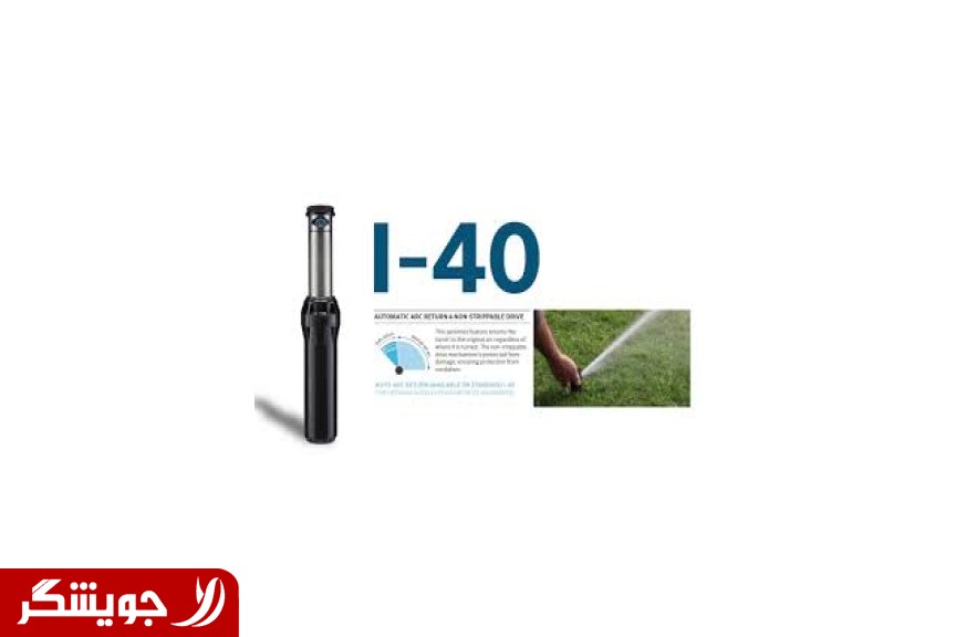 HUNTER sprinkler model I40 is a hidden Hunter sprinkler with many features. Hunter I40 sprinkler has factory fabric rubber head. HUNTER I40 has a controllable road and easy adjustment. Height: 20 cm i40-04 model and 26 cm i40-06 model The height of the hidden part: -1510 cm Diameter: 5 cm Spray radius: 14 to 22 meters Normal working pressure: it works best from 3 to 5 bar Entrance: 1 inch Flow rate: from 30 to 110 liters per minute Bow adjustment: from 50 to 360 degrees It has 6 standard black nozzles for normal models and 6 colored nozzles for models that have water outlets on both sides. It has a fabric rubber cap (installed in the Hunter factory) Uses: grass fields, sports complexes and football fields, golf fields