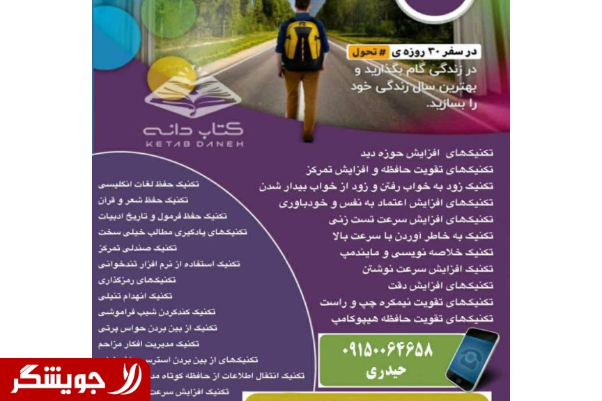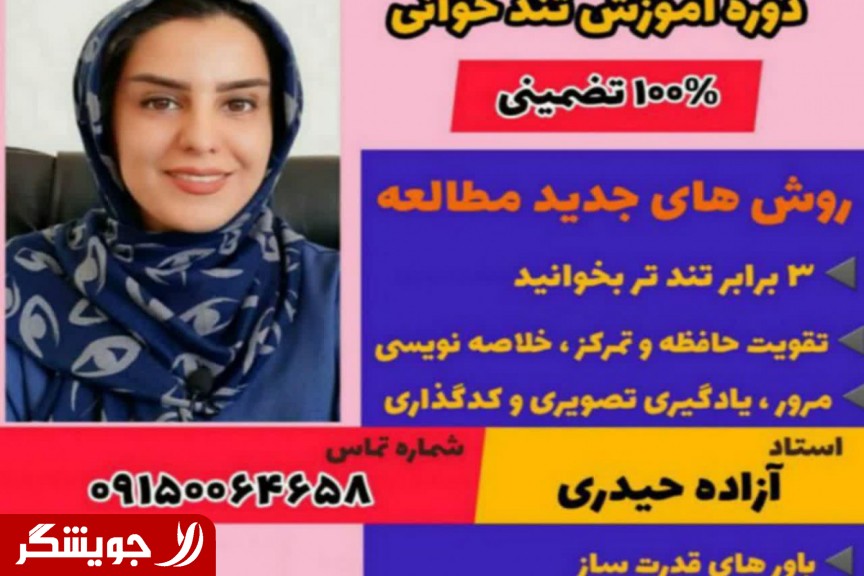 Master organizer Azadeh Heydari with the 37th rank of the national entrance examination for a master's degree in psychology and an official member of the research team of the selected inventor of Khorazmi, Dr. Bahman Shah Babaei The coaching training pack includes speaking, wealth-building beliefs, expression techniques, classroom management, negotiation, self-confidence, etc. With the bonus of night reading and share ownership and the right to teach fast reading and coaching and... For more information, send the word Joishgar to WhatsApp number 09150064658.