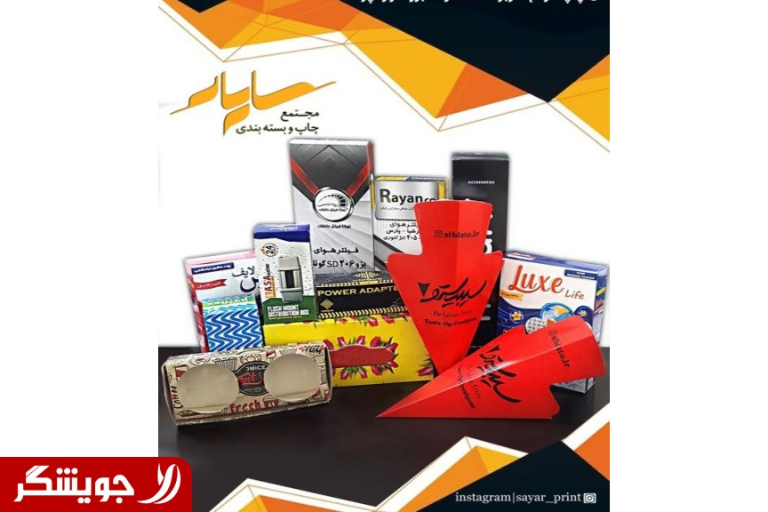 Big Sayar printing complex in the field of production of general and exclusive car filter boxes, tissue boxes, washing powder boxes and all kinds of detergents, food packaging boxes, pizza and fast food boxes, printing brochures and catalogs, printing all kinds of labels simple and with adhesive back and all printing and box making services with the highest quality and the lowest price are ready to cooperate with all manufacturers and companies from all over the country. Phone orders (At the bottom of the ad)