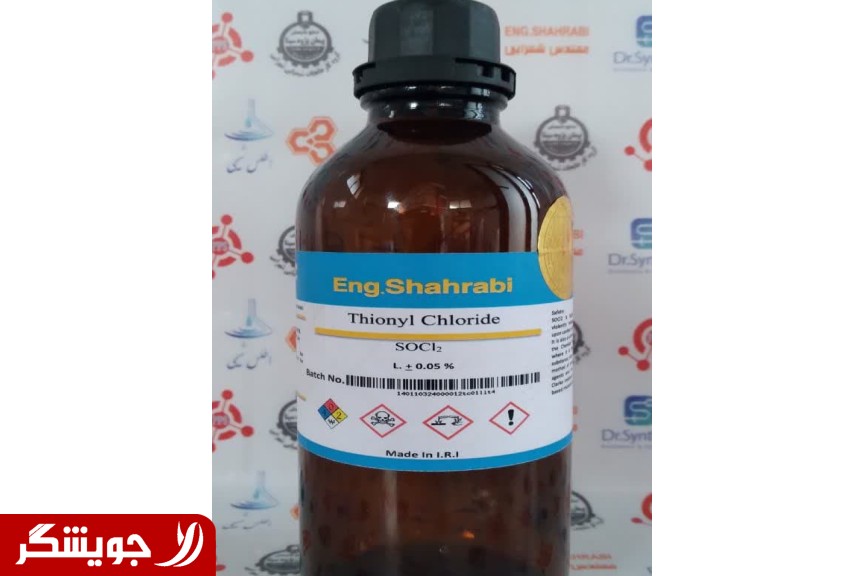 Thionyl chloride is one of the strategic scientific and industrial mineral compounds.Thionyl chloride as another knowledge-based product with a patent certificate and certificates and scientific and industrial approvals of the chemical industry. Peyman Pejoh Sina. The appearance of pure thionyl chloride produced by Peyman Pejoh Sina Chemical Industries as the first and only Iranian thionyl chloride is a transparent and colorless liquid. The molecular mass of the thionyl chloride produced is 118.97 grams of bromole, and the boiling point of thionyl chloride is 74.5 degrees Celsius. Thionyl chloride has a pungent and harmful smell, and thionyl chloride reacts with water due to its proximity to moisture in the air and Corrosive gas produces hydrochloric acid and sulfur dioxide, therefore, in addition to keeping and using thionyl chloride, it is necessary to pay attention to related safety issues, therefore, thionyl chloride, which is a corrosive liquid with a relatively high vapor pressure due to decomposition It is possible to transport and store thionyl chloride in suitable containers and in a cool, dark and dry place. Thionyl chloride is produced by Peyman Pajoh Sina Chemical Industries in order to meet the domestic needs of industries such as pharmaceuticals and raw material manufacturing industries. and intermediate or primary compounds of dyes and resins and agricultural and vegetable pesticides can be provided. thionyl chloride is used in the production of the new generation of thionyl chloride lithium batteries. Thionyl chloride is also used in the chemical and polymer industries as an ideal reagent for ionic chlorination of functional groups. Shahrabi chemical factories are able to produce and supply pure thionyl chloride for the laboratory. universities, organizations and chemical industries with excellent quality, hereby declares its readiness to enter into an official contract for the production and supply of thionyl chloride based on following the governing laws and regulations, that the application form for the purchase of thionyl chloride in the format section The purchase request is available under the same text. It should be noted that it is necessary and necessary to provide the necessary permits from the account party's organization to purchase thionyl chloride.