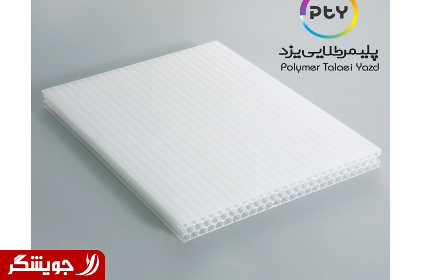Honeycomb polycarbonate sheets of Yazd Golden Polymer Company have unique mechanical, thermal, optical and acoustic properties due to the unique structure of the internal networks, which enables its use for engineering designs. The three-walled honeycomb sheets are covered with a protective layer against ultraviolet rays. Both sides of the sheets are covered with polyethylene surface protective film, and on the surface of the sheet, which has a layer resistant to ultraviolet rays, information about how to install and maintain the sheet is printed.