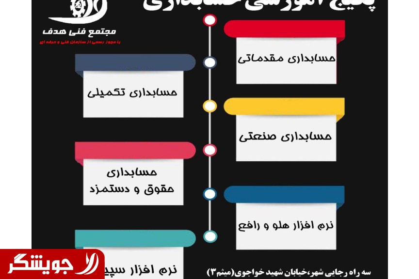 Job seekers, students, accounting enthusiasts Do not miss the opportunity Technical collection for professional • Under the supervision of a professional organization Technical and professional diploma • Tuition in installments • Equipped with smart computer sites • ١٠% discount for students and employees of departments and institutions • Familiarity with financial statements • Registration of special accounts of commercial enterprises • Carrying out accounting operations related to payroll • Recognizing accounting assumptions and principles • Using computers in accounting • Using Excel software in Accounting operations Practical, supplementary, industrial, salary training from beginner to professional level with the lowest special labor market cost with a professional technical degree. After completing the course, you will acquire the necessary skills to get a job. Accounting is an integral part of a company, so hurry up for specialized training with ١٠% discount Optimal training of Peach, Rafeh, SPSS Sepidar and system partners software at the lowest cost Become an expert in the goal by passing an accounting course . Address: Gohardasht Three Ways - - Meysam St. ٣ Website: http://www.hadaf-ins.com E-mail: mailto:hadafn@gmail.com Contact number: ٢٩٩٧١44٢٩٩٧١-٣44٧٩65٧-٠٢٣٣44٢٨١١٧