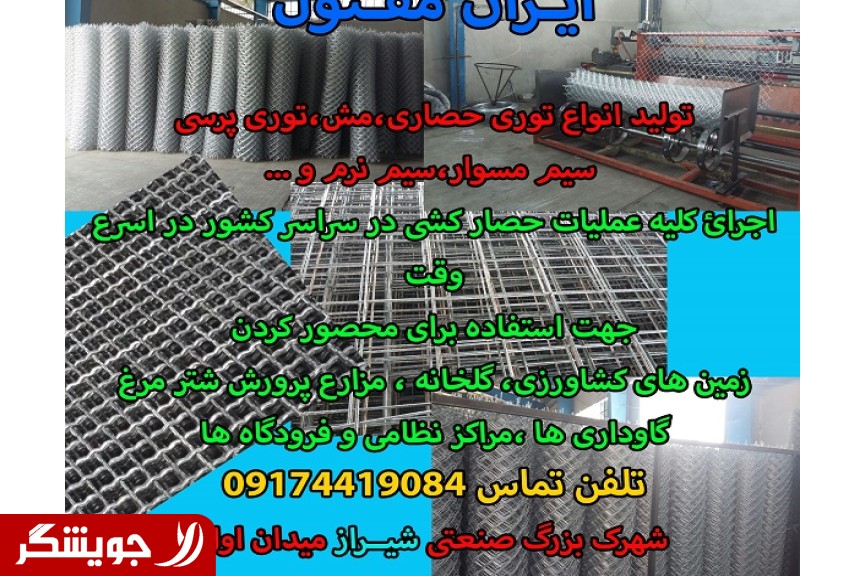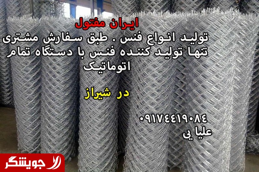 کارخانه تولیدی کننده انواع فنس در شیراز تولید کننده انواع فس تولید کننده انواع سیم‌خاردار تولید کننده پایه فنس تولید کننده انواع درب فنسی تولید کننده انواع مفتول گالوانیزه تولید کننده انواع مش