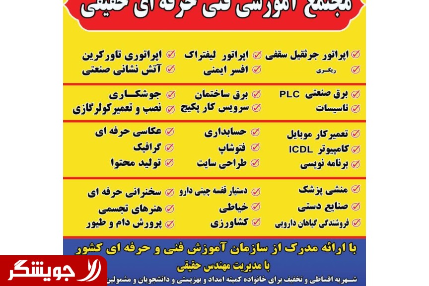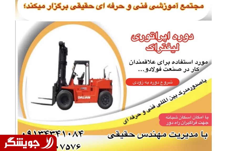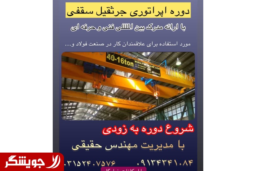 It is important for job applicants in the industry and those who intend to immigrate to start registration for the comprehensive operator training course for overhead crane with cabin and remote control, crane rigger, forklift and tower crane. Theoretical classes in the academy and practical classes in the workshop environment with the teaching of experienced professors along with the presentation of a state, valid and international certificate of professional technology. Terms of installments and checks for dear apprentices. Also special conditions for remote people. please call for more information .