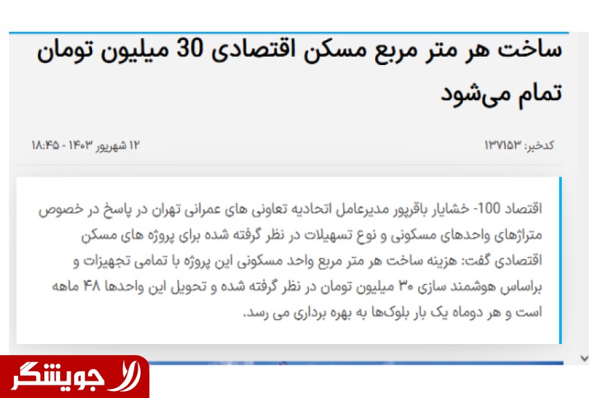 Construction costs of Mehr and National Housing apartment buildings with polystyrene have reached 30 million toman per meter just for building, and 70 million toman per meter with land! You have neither land nor building.