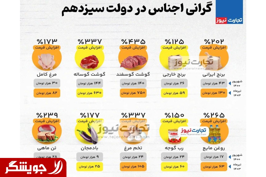 One bag of low-quality cement originally priced at 7 toman is 370,000 toman at the store, and can rise to 500,000 toman on site; government stone bread priced 2,000 toman in Shahrivar 1403 (September 2024) rose to 3,000 toman (+50%), and by Tir 1404 (July 2025) it will be 7,500 toman (+250%) with reduced weight and massive price hikes! Various other commodity prices and municipal fees have skyrocketed drastically.