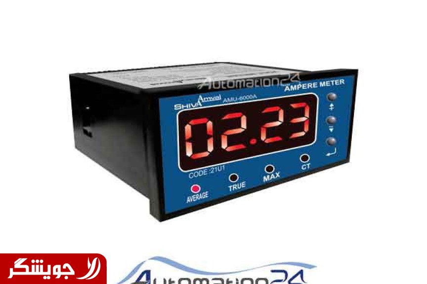 The 96×48 Shiva Omvaz ammeter with single-phase power supply can measure and display current from 0.01 amperes up to 6000 amperes in various CT ranges. This device is equipped with a maximum current recording system, and current measurement methods include average and TRUE RMS.