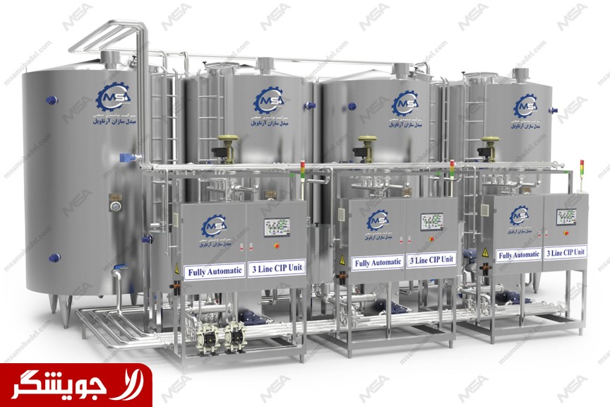 The CIP (Cleaning In Place) unit is an advanced central washing system designed to clean industrial production lines without the need to separate them. This system with a high level of automation and optimal energy consumption performs the washing process fully automatically and optimally. The fully automatic CIP unit has a function change system that can adjust the washing process based on the needs of different production lines. The use of CIP central washing system, especially in the food, pharmaceutical and chemical industries, improves the quality and hygiene of products and increases productivity and efficiency. Cleanliness of the environment in terms of health is very important in food and dairy factories. Therefore, factories should consider high standards for these conditions so that their output is completely free from viruses and contamination in terms of health. CIP systems can be used for fast, efficient and reliable cleaning of all processes in these types of factories.