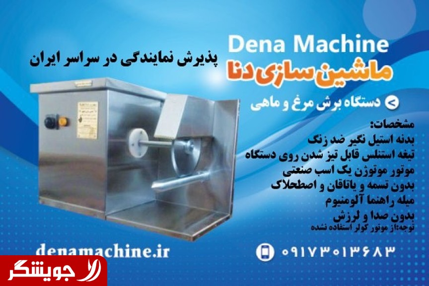 cutting machine, chicken, fish, Dena مرغ crushing Dena -piece Ken, poultry, and fish Dena دستگاه chicken on اره chicken on electric Dena جنس blade of steel stainless, stainless steel, adjustable, sharp on the device تجهیزات Kitchen Industrial مبلمان administrative تجهیزات cleaning تجهیزات hospitality واکس electric Dena پولیشر shoes Dona fer shoes Dena مرغ crushed Dona cutting machine, chicken, fish, Dena, patches, decals, poultry, and fish Dena واکس liquid oily. Shoe shine ارسال to all over Iran