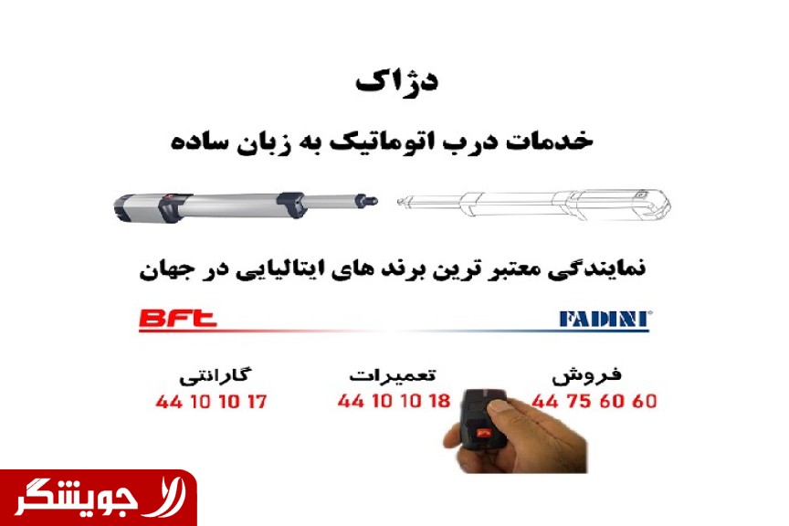 Dejak Aram Company is the official representative of BFT and Fadini brands, and the FAAC specialized clinic in the field of sales, installation and repair of automatic doors and traffic control systems. Our services include the supply and repair of Italian jacks such as BFT, Fadini, Beninca, FAAC, CAME, Genius, Proteco, Nice, V2, as well as reputable Iranian jacks such as yol, cement, Suzuki, beam, beta.