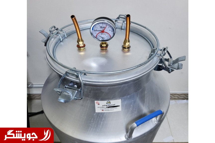Stainless steel and aluminum steam pot suitable for making rose water and herbal distillates. 26 liters stainless steel, and 4 liters, 10 liters up to 50 liters imported from Turkey with high quality - with copper outlet and detachable lid and 6 stainless steel clamps. Connectable to condenser. Output capacity of 6 liters per hour. With green-grade heat-resistant gasket specially for sealing. Product includes temperature and pressure gauge and 2 meters silicone hose. This device is also used for producing very low hardness distilled water, which can reduce water hardness from 500 to below 5.