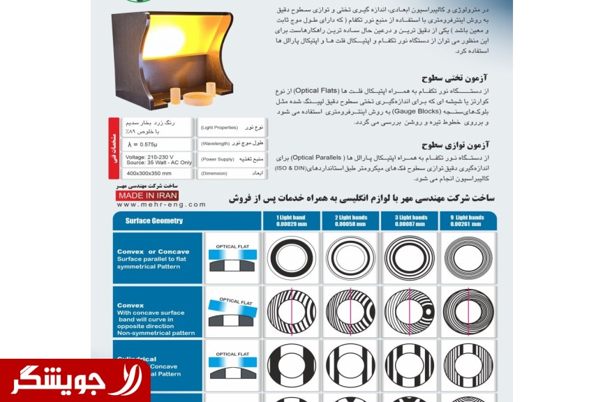 In the world of metrology and dimensional calibration, where accuracy is defined on the micron and nanometer scale, assessing the quality of smooth and smooth surfaces is a permanent challenge. Mehr Engineering Company has made this challenge an opportunity to display absolute accuracy by presenting a complete and integrated solution based on the physical principles of interferometric (optical interference). The Takfam light source, along with a set of optical filters and optical paralleles with precision grade, powerful, simple yet precise, at the same time for Flatness and Parallelism, provides calibration laboratories and industrial quality control units.