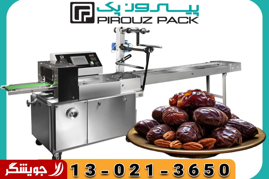 Some models have a digital display, accurate temperature settings, product presence detection sensors, and a pack empty test system. The existence of such facilities in the date packing machine ](https://pirouzpack.ir/product/%d8%af%d8%b3%d8%aa%da%af%d8%a7%d9%87-%d8%a8%d8% 25b3%d8%aa%d9%87-%d8%a8%d9%86%d8%af%db%8c-%d8%ae%d8%b1%d9%85%d8%a7/) Person or [packaging device Chocolate] 5d8%b3%d8%aa%d9%87-%d8%a8%d9%86%d8%af %db%8c-%d9%85%d9%88%d8%a7%d8%af-%d8% ba%d8%b0%d8%a7%db%8c%db%8c/%d8%af%d8%b3%d8%aa%da%af%d8%a7%d9%87-%d8%a8%d8 %b3%d8%aa%d9%87-%d8%a8%d9%86%d8%af%db%8c-%d8%b4%da%a9%d9%84%d8%a7%d8%aa/) In addition to increasing the accuracy of packaging, dates also increase the price of the device.