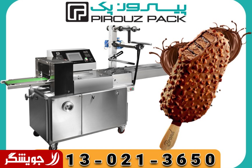 The packaging machine for ice cream from reputable brands like Pirouzpack guarantees a long lifespan and uninterrupted performance with optimized design and high-quality components. Easy adjustment for different popsicle sizes, energy-efficient consumption, and compatibility with various films (OPP, metallized, cellophane) are other advantages of this machine. This equipment is also used for packaging similar products such as ice cream sticks, cone ice creams, and even some frozen desserts.