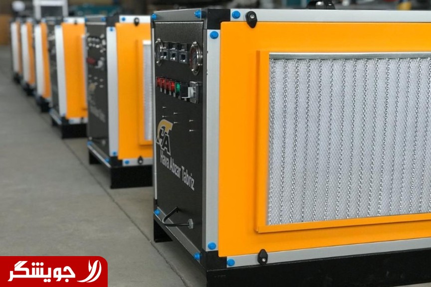 The dehumidifier is responsible for drying the compressed air produced by the compressor. The refrigerated dehumidifier, known in the industry by various names such as dryer, moisture remover, dehumidifier, refrigerated dryer, etc., can create a dew point of 3 degrees Celsius in the evaporator. This process causes moisture to accumulate inside the evaporator and be discharged through the solenoid valve, ultimately removing up to 80% of the moisture from the compressed air. For further understanding, it is recommended to refer to the educational videos section related to this topic.