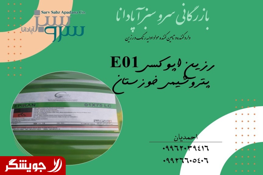 E01 epoxy resin, a product of Khuzestan Petrochemical, is produced by the reaction of bisphenol A with epichlorohydrin and is soluble in xylene. Due to its very high corrosion resistance and good mechanical and chemical strength, it is used in the foundations of structures, engine rooms, and other surfaces that require a high-performance, long-lasting coating. Khuzestan Petrochemical's E01 epoxy resin also has good wetting ability with pigments and is used in industrial anti-corrosion coatings.