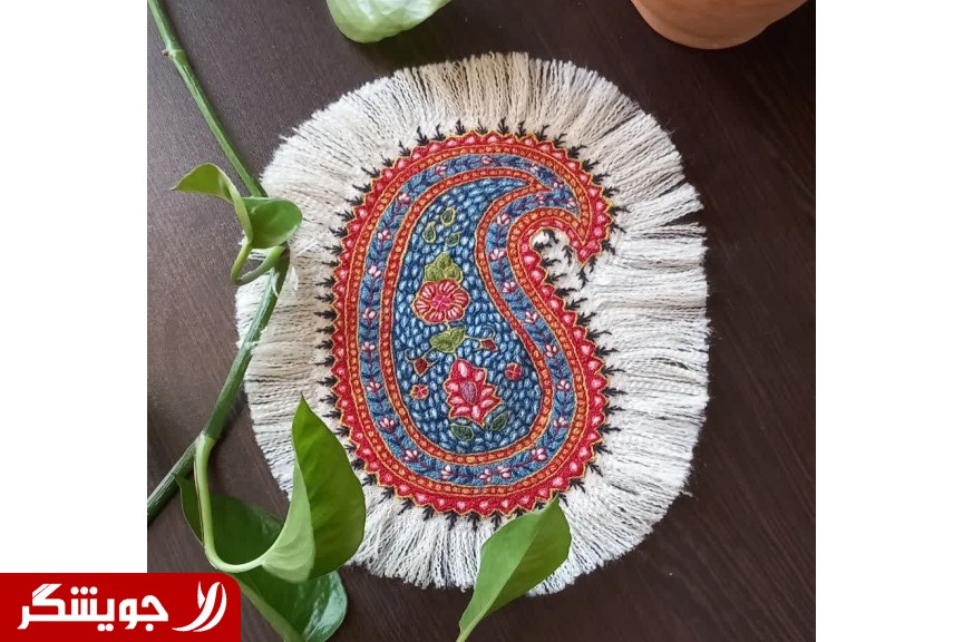 Table runner with almond design and plant-based thread, suitable for framing and use as a tablecloth