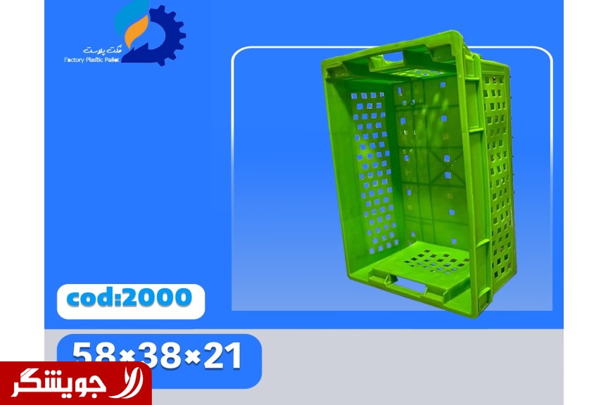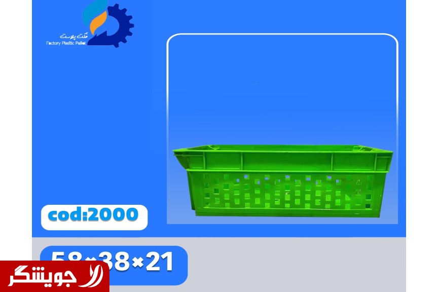 Shrimp Basket (Basket Code 2000) Dimensions: 60×40 Height 20 Weight: 1500 Color options: Green - Yellow - Blue - Red The shrimp basket (commonly known as a fisheries basket or fish and shrimp basket) is an essential tool in the aquaculture supply chain. The main purpose of designing these baskets is to preserve the quality and hygiene of seafood products, which are very sensitive and perishable. One important feature of these baskets is the use of hygienic (food grade) raw materials. These products must be made from high-quality plastics such as polyethylene (PE) or polypropylene (PP) with food-grade certification to ensure no contamination or unpleasant odors are transferred to the shrimp during direct contact. The basket's mesh design allows proper ventilation and ensures air circulation to prevent heat build-up and spoilage of the shrimp. Additionally, with proper drainage, excess water resulting from melting ice is easily removed. Furthermore, these baskets are produced with high durability, making them very sturdy against impact, pressure, and heavy weights, which helps prevent damage to the shrimp. These baskets provide suitable insulation against moisture, seawater, and chemicals. Compared to metal baskets, the plastic material does not rust and is a more economical choice. They are easy to wash with water and disinfectants, which is vital for maintaining hygiene in processing environments. The main applications of this basket include harvesting and collecting in shrimp farming for product collection. Transporting and moving shrimp from the fishing site to local markets, processing centers, or slaughterhouses. Temporary storage during washing, sorting, and packaging. Also, given their suitable quality, they are an excellent option for freezing and long-term storage of shrimp in very low-temperature environments. Key advantages of these baskets compared to metal or wooden boxes include better hygiene, longer durability, and not absorbing shrimp odors.