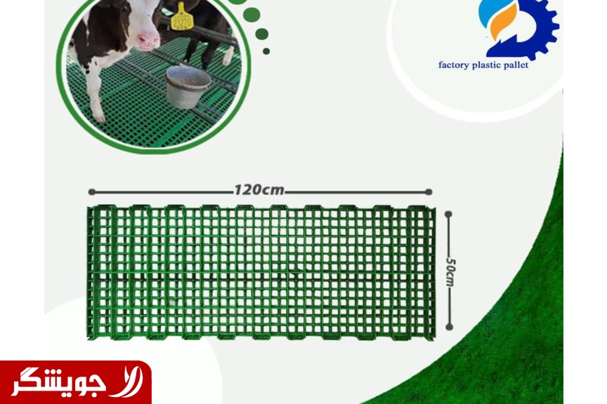 Livestock farming pallet (livestock flooring or grating) is a type of plastic pallet installed as a surface on the floor of livestock keeping areas, preventing direct contact of the animal's body with the ground. This product measures 120×50 with a height of 4 cm, designed as slats and can have legs installed. Also, due to its puzzle-like structure, these pallets easily fit together and lock in place. The purpose of using this product is to create a clean, dry, and anti-slip environment; additionally, using this product makes washing and waste removal an easy and hygienic option, which helps maintain the health of the animal's skin. Advantages of these livestock floorings include their lightweight and high resistance to moisture. Also, due to the raw materials and plastic composition, unlike metal pallets, they do not rust and have a longer useful life. These pallets are produced in a grid pattern to allow urine and waste to pass through easily. They are anti-slip and antibacterial. They are easy to install and move. They have a long lifespan against moisture and animal manure. They also provide relatively good thermal insulation. These pallets are available in green and blue color options.