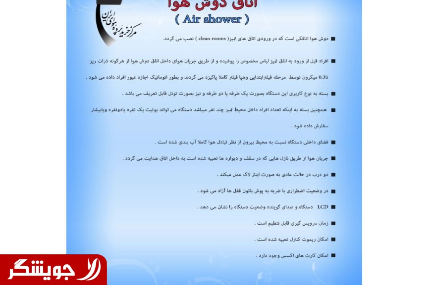 دوش هوا اتاقکی است که در ورودی اتاقهای تمیز(Clean Rooms) نصب می گردد.