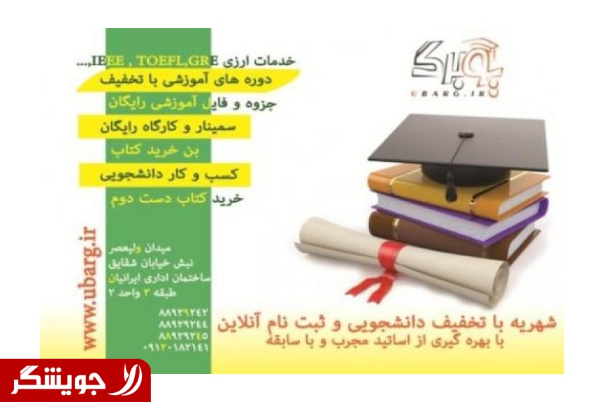 یوبرگ علامت تجاری و سایت موسسه مبتکران تخفیف برگ دانش پژوه است که تحت عنوان موسسه با شماره ثبت 33707 از سال 1392 فعالیت خود را در حوزه ارائه خدمات آموزشی و پژوهشی آموزشگاه های تراز اول به صورت اینترنتی اغاز نموده است.