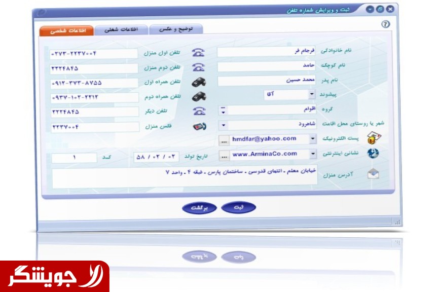 برای دیدن نرم افزار جالب ، زیبا و پر از امکانات دفترچه تلفن ، به سایت زیر بروید