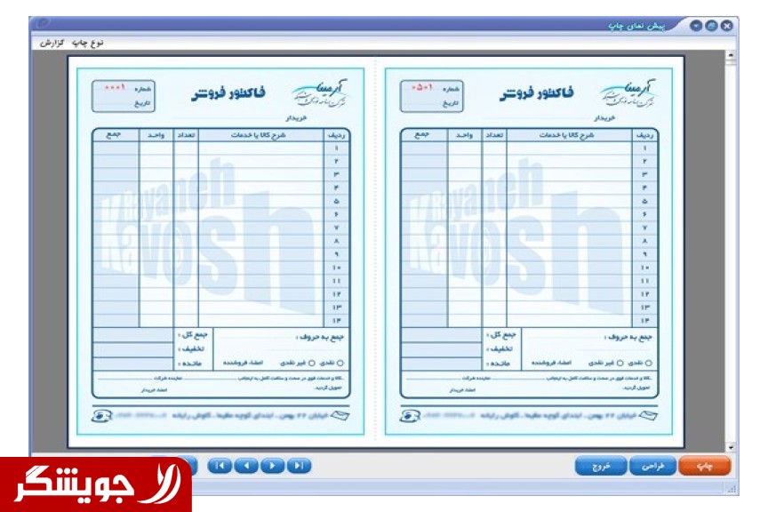 ایده آل برای مراکز تایپ و تکثیر و چاپخانه ها این نرم افزار جهت ایجاد فرمهای مختلف از قبیل دفترچه اقساط ، فاکتور ، برچسب و ... و زدن شماره و تاریخ بر روی آنها کاربرد دارد