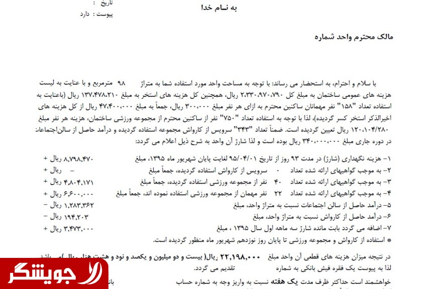 انجام امور مربوط به مدیریت و حساب داری مجتمع های بزرگ و محاسبه شارژ واحدها با روش جدید و دقیق بصورت میزان شارژ برای هر متربع امکان محاسبه شارژ استخر و کارواش مجتمع بصورت جداگانه جهت اطلاعات بیشتر لطفا با شماره (در پایین آگهی)تماس بگیرید.