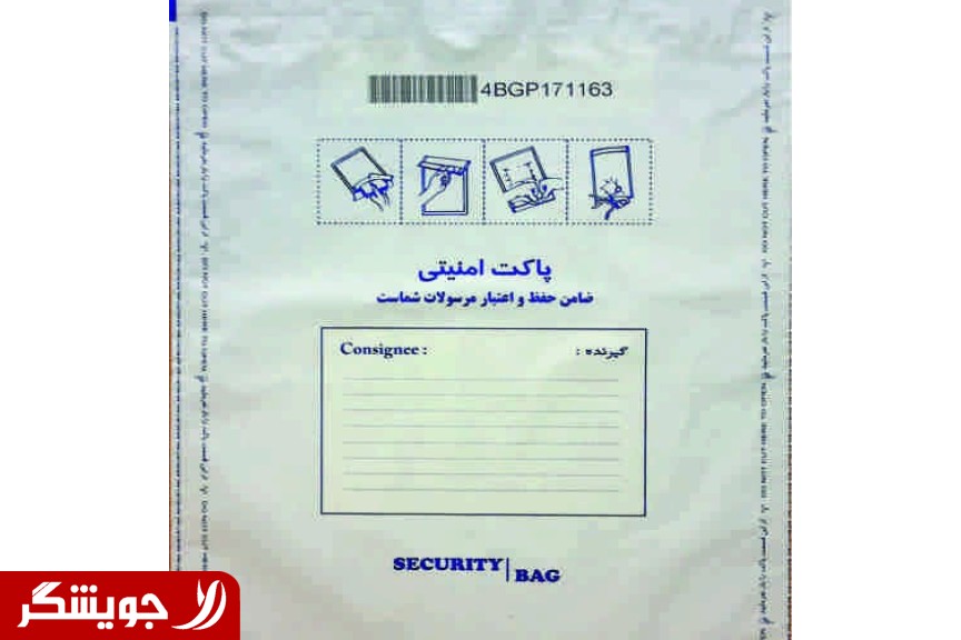 •جنس پاکتها از پلاستیک بوده و مقاوم در برابر نفوذ آب ، رطوبت و پارگی میباشد . •دارا بودن شماره سریال مشترک هم بر روی پاکت و هم در قسمت رسید ارسال کننده . •ظاهر شدن کلمه OPEN در صورت اقدام برای باز کردن پاکت •وجود رسید برای فرستنده پاکت •قسمتی برای ثبت مشخصات تحویل گیرنده •ابعاد پاکت 42/5 * 30 سانتیمتر میباشد .