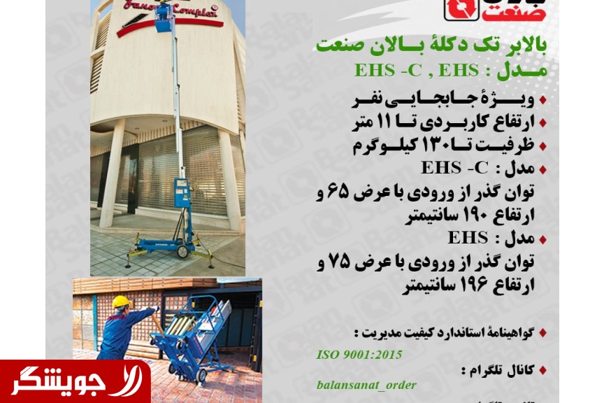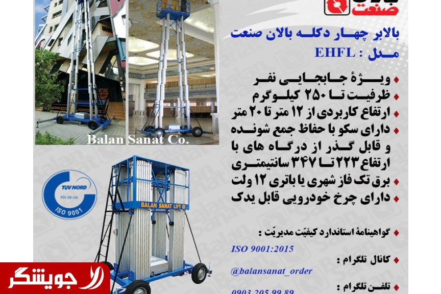 بالان صنعت تولید کننده انواع بالابر های صنعتی و خانگی بالابر ویژه مساجد و اماکن مذهبی دارای گواهینامه ISO 9001:2008 عضو انجمن تحقیق و توسعه ایران R&D'