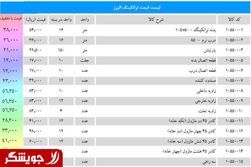داکت و ترانکینگ البرز با سایر متعلقات زیر قیمت بازار عرضه می گردد. تمامی محصولات موجود می باشد
