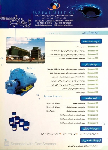 کلمات کلیدی : اسمز معكوس - شیرین‏سازى آب - تصفیه فاضلاب - ضد خوردگی - بایوساید – پساب صنعتی - مدار خنک کن - بویلر- آنتی اسکالانت – فیلتر شنی- کربنی- سختی گیر- سیستم آب بدون یون- رزین آنیونی- رزین کاتیونی – لجن فعال