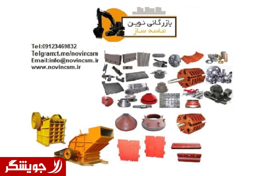 انواع چکش، سندان، بغل بند و کلیه قطعات سنگ شکن های چکشی نظیر کوبیت، بهرینگر HS، ماسه ساز، پارکر، هازماک، گودوین انواع شانه فک ها، فک بند ها و یاتاقان ها و کلیه قطعات سنگ شکن های فکی انواع منتل، کانکیو، هدسنتر، گلدانی و تاپ شل، باتم شل، بوش ها و کلیه قطعات سنگ شکن های هیدروکن انواع توری های ضد سایش آهنی و فولادی، یاتاقان، بلبرینگ، وزنه لنگر، فنر قطاری و کلیه قطعات سرند ها انواع لاستیک، رولیک، پایه رولیک، غلطک، الکترو موتور، گیربکس، دنده، زنجیر و کلیه قطعات نوار های نقاله انواع بازو، پنجه، یاتاقان، جک، کرپی، زنجیر، قاشقک الواتور و کلیه قطعات کارخانه آسفالت انواع ناخن، پین ناخن، کلنگ، تیغه، گوشه، محافظ تیغه، محافظ گوشه، پیچ و مهره و کلیه قطعات زیربندی ماشین آلات راهسازی